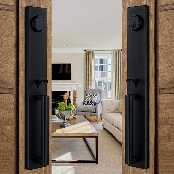 NEWBANG Matte Black Keyed and Dummy Handleset for Double Front Door,MDHST2016DB-SET-1P
