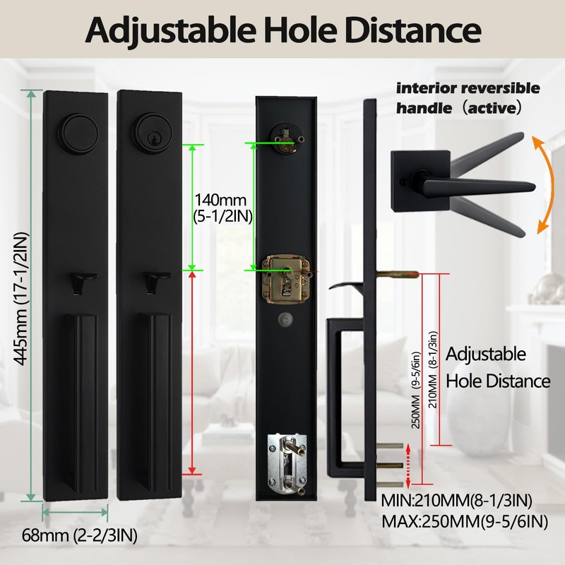 - 【Movable Hole Position】Fit for All of US Standard Doors,The position of the pin to install is movable to fit for various dimension of the hole and disctance.Any Distance from 210mm (8-1/3 IN) to 250mm (9-5/6 IN)