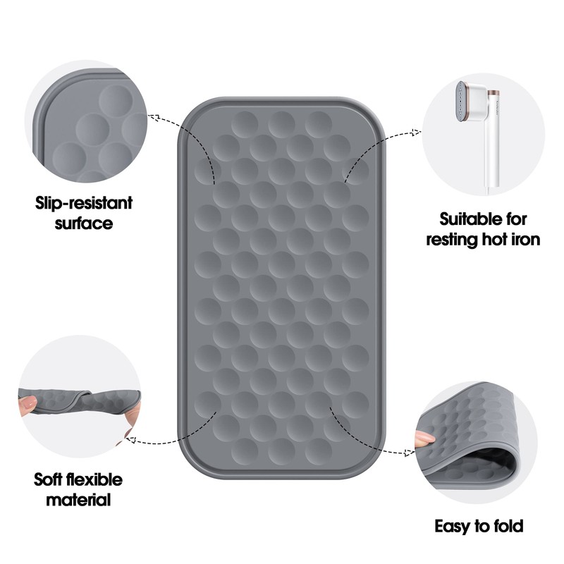Newbealer Silicon Mat for Hot Iron Rest - Heat Resistant, Anti - Slip, Protecting Your Table During Ironing, Non-Burning, Durable - Gray