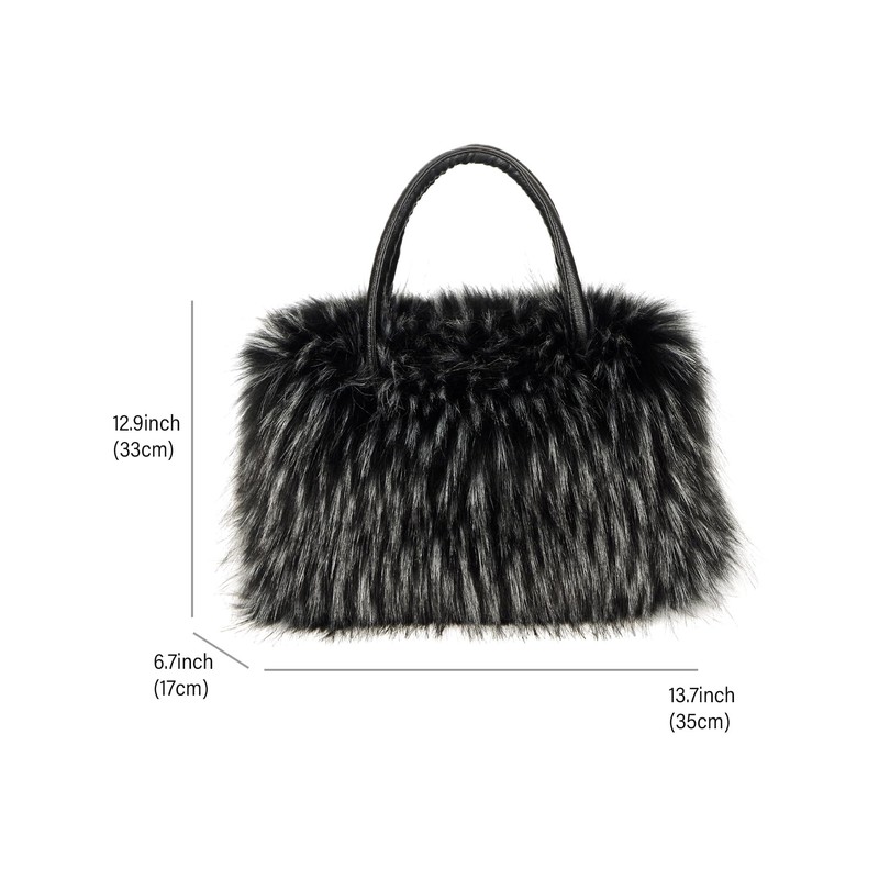 NEWBELLA Faux Fur Tote Bag for Women - Convertible Fluffy Handbags Satchel, Zipper Closure & Work-Friendly Size, white-black
