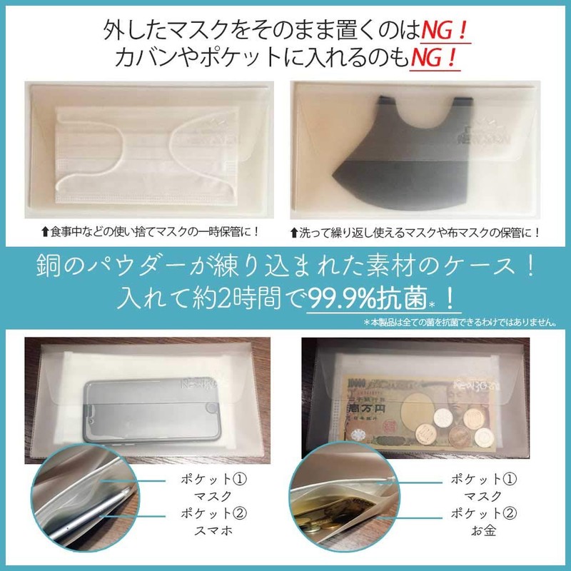 - (You can store your mask while using it on the go or at home) This material uses a film containing copper that has been talked about with antibacterial effects