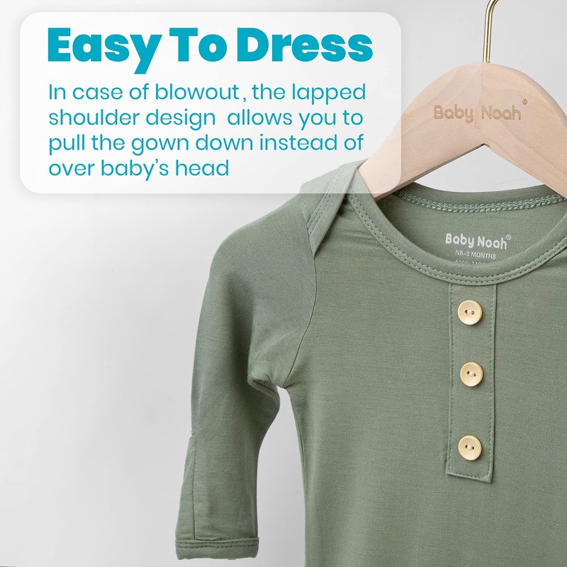 - ✿THE PERFECT COMING HOME OUTFIT: Our long sleeve knotted gown looks great on photo. Comes with hat and bow headband to complete the look. It keeps their hand and belly cozy, and the extra long design makes tying easy, and grows with baby. Decorated button on the gown to looks extra stylish (Notice: the button is for decorated purpose only, and cannot be open). Great baby shower gift as hospital outfit for newborns.