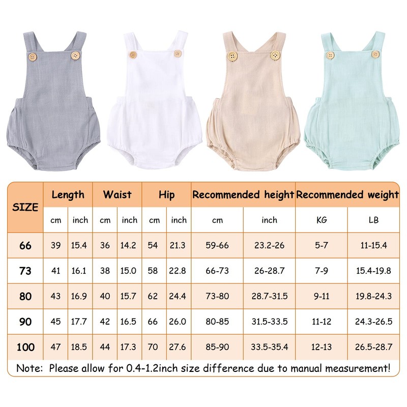- Material: This baby romper is made of 95% cotton and 5% spandex ,high-quality cotton linen fabric, which is soft, breathable, skin-friendly and comfortable.