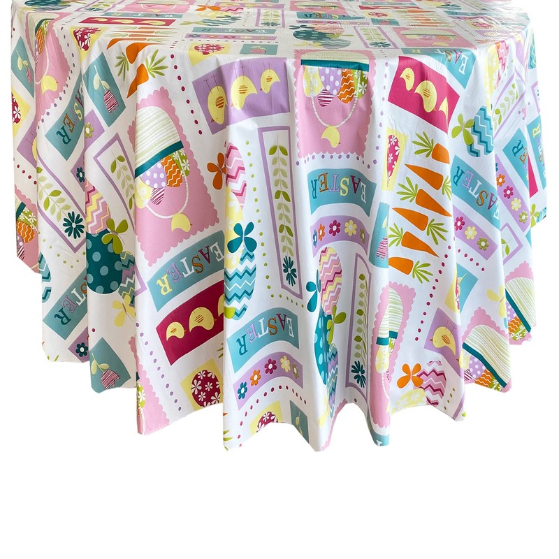 - Newbridge Easter Spring Expressions Mod Patchwork Vinyl Flannel Backed Spring Tablecloth - Cheerful Pastel Easter Egg Print Wipe Clean Easy Care Vinyl Tablecloth, 60” x 84” Oval
