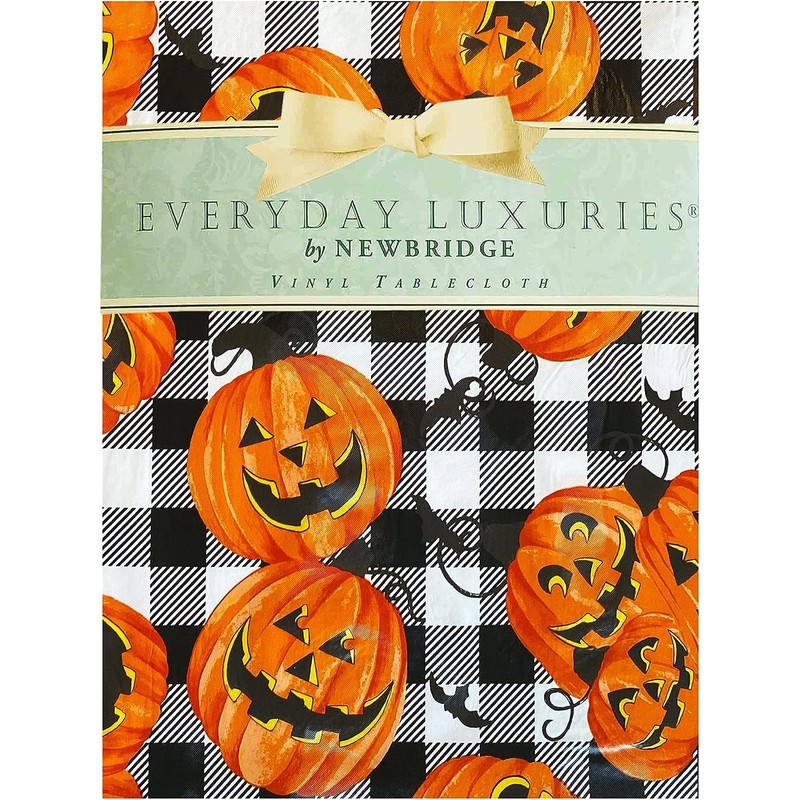 - Newbridge Halloween Jack O Lantern Pumpkin Farm 60 x 102 Inch Rectangle Vinyl Tablecloth with Flannel Backing, Black Gingham Check Pumpkins and Bats Vinyl Table Cover for Holiday Party Dining