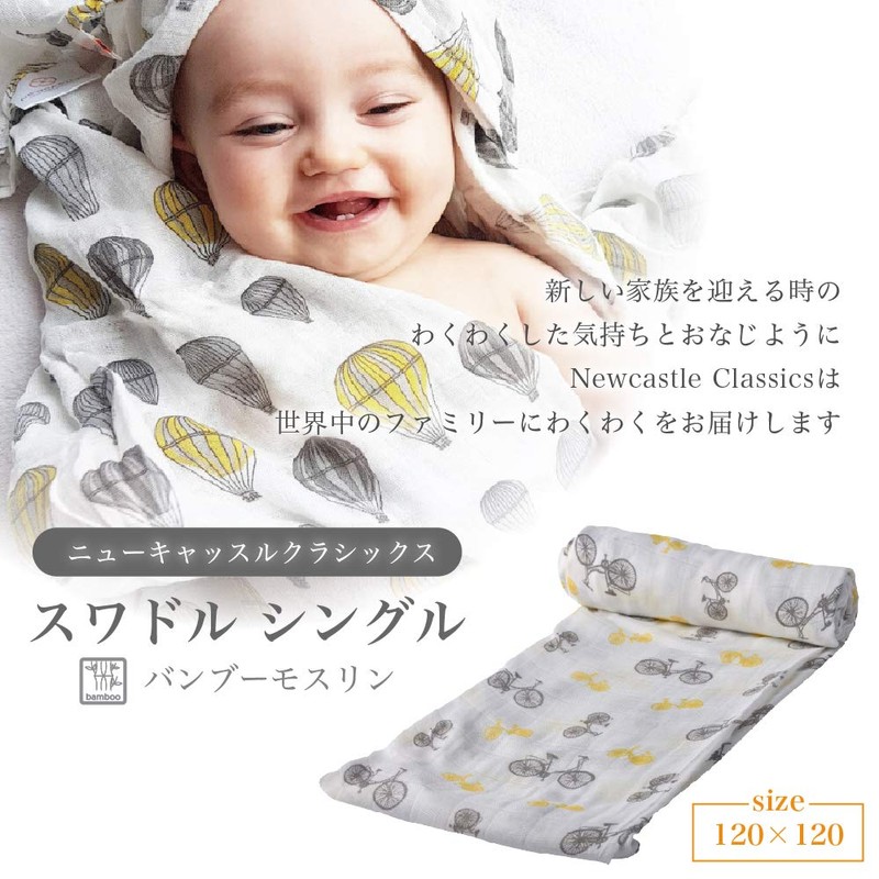 Newcastle Classics NC-SB452 Swaddle Bamboo Muslin Swaddle, Soft Blanket, Baby Shower, Vintage Bicycle 47.2 x 47.2 inches (120 x 120 cm), 0 Months and Up