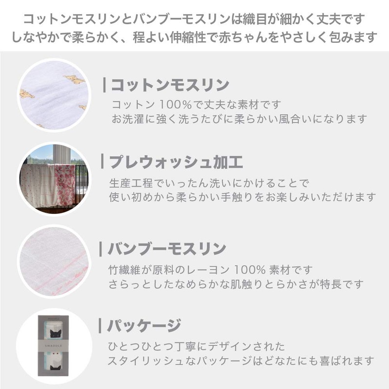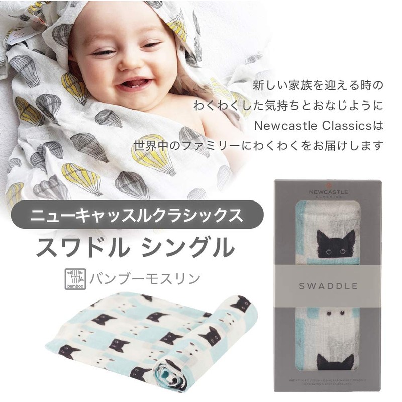 Newcastle Classics NC-SB689 Swaddle Bamboo Muslin Swaddle, Soft Swaddle, Soft Blanket, Baby Shower, 47.2 x 47.2 inches (120 x 120 cm), 0 Months and Up