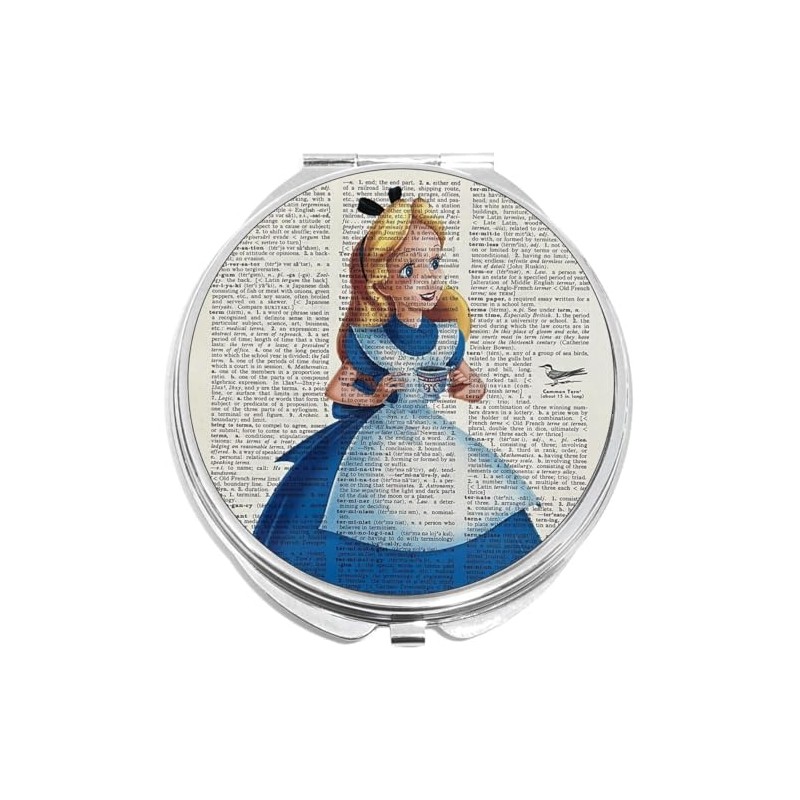 NewCharms Alice in Wonderland Tea Party Book Compact with Mirrors - Perfect Pocket and Purse Size Folding Mirror for Applying Make Up Anywhere