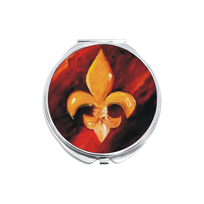 NewCharms Gold Red Fleur De Lis Compact with Mirrors - Perfect Pocket and Purse Size Folding Mirror for Applying Make Up Anywhere
