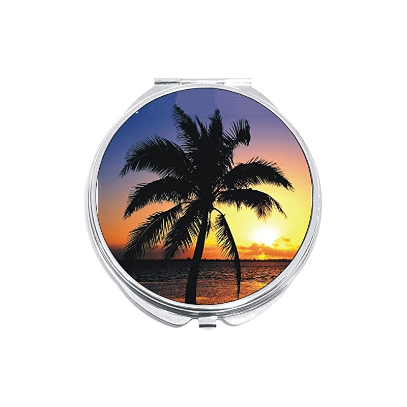 NewCharms Palm Tree Tropical Sunset Compact with Mirrors - Perfect Pocket and Purse Size Folding Mirror for Applying Make Up Anywhere