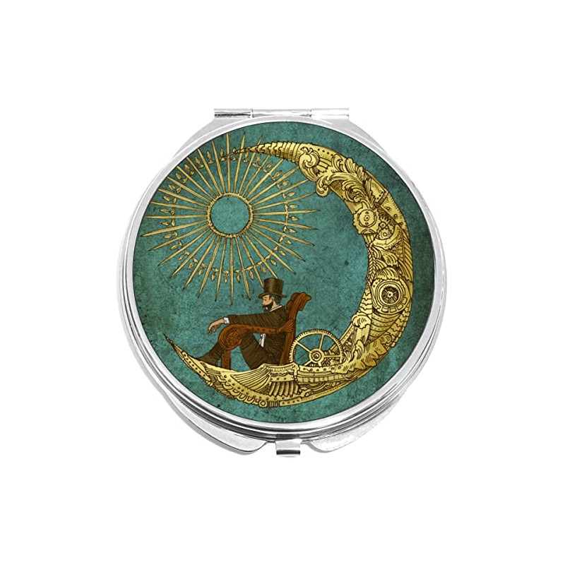 NewCharms Steampunk Man on Moon Compact with Mirrors - Perfect Pocket and Purse Size Folding Mirror for Applying Make Up Anywhere