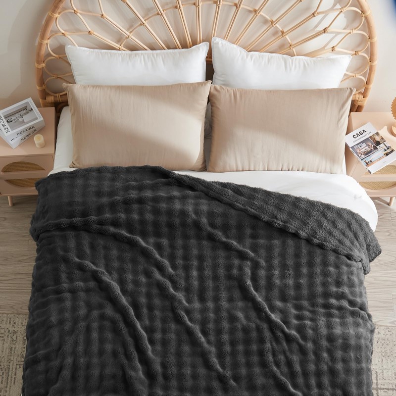 NEWCOSPLAY King Blanket for Couch Dark Grey Super Soft Flannel Fleece 3D Bubble Lightweight Bed Blanket All Season Use (Dark Grey, King(90"x110"))