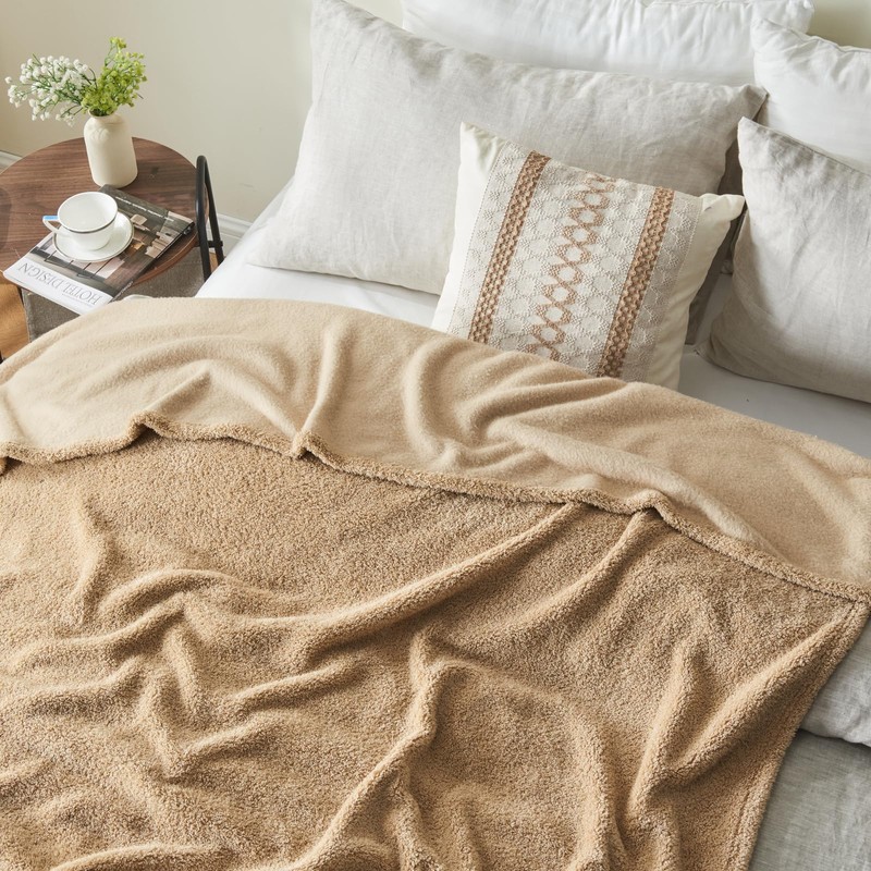 NEWCOSPLAY Knitted Khaki Blanket Super Soft Plush Throw for Couch Fuzzy Fluffy Microfiber Lightweight Blanket for Bed Sofa All Season Use (Khaki, Twin(60"x80"))