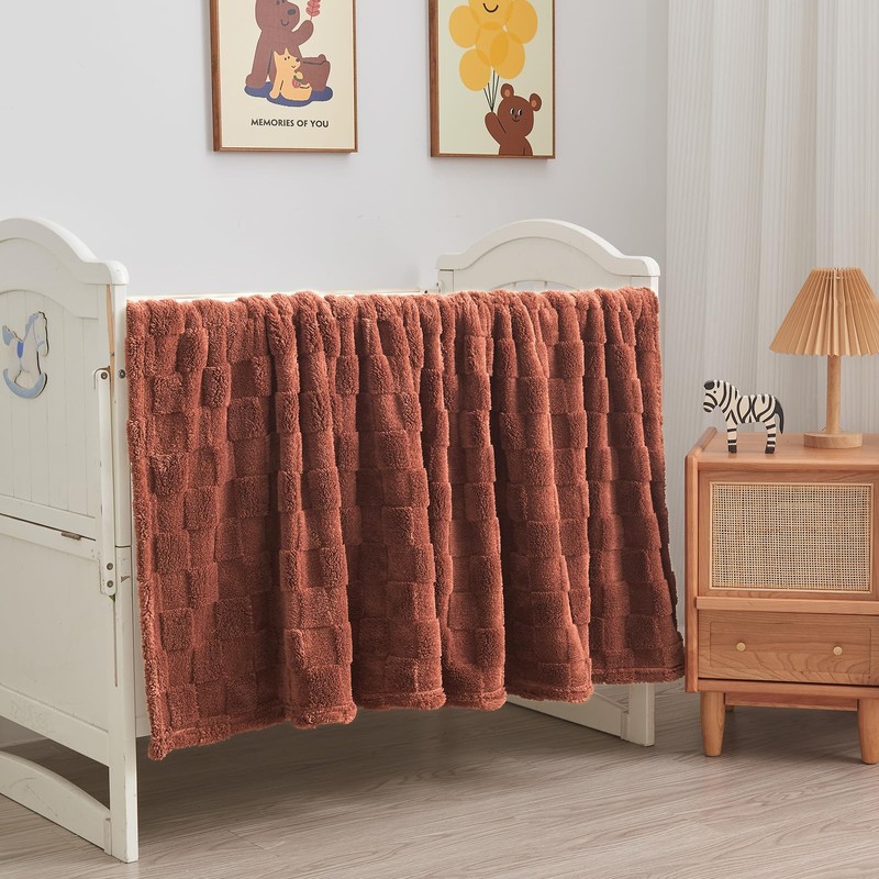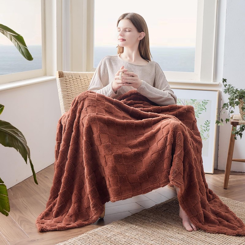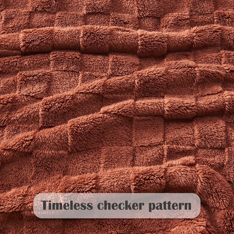 NEWCOSPLAY Super Soft Throw Blanket Coffee Premium Silky Flannel Fleece 3D Checkered Lightweight Bed Blanket All Season Use (Coffee Checkered, Throw(50"x70"))