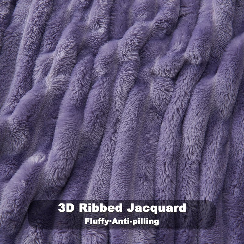 NEWCOSPLAY Super Soft Throw Blanket Lavender Premium Silky Flannel Fleece 3D Ribbed Jacquard Lightweight Bed Blanket All Season Use (Lavender Ribbed, Throw(50"x60"))