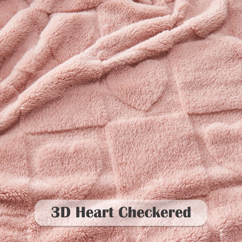 NEWCOSPLAY Super Soft Throw Blanket Pink Love Premium Silky Flannel Fleece 3D Heart Checkered Lightweight Bed Blanket All Season Use (Pink Love, Throw(50"x70"))