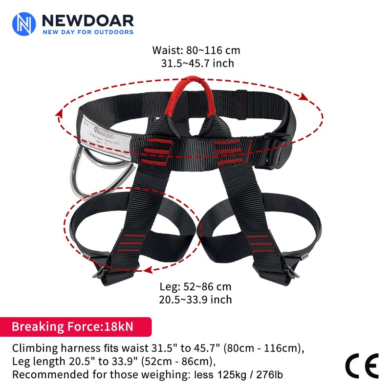 - [FIT]:climbing Belts fits waist 20"to 48"(51cm-122cm);Leg 16" to 31.5"(40cm-80cm). Easy to operate, wear and remove.