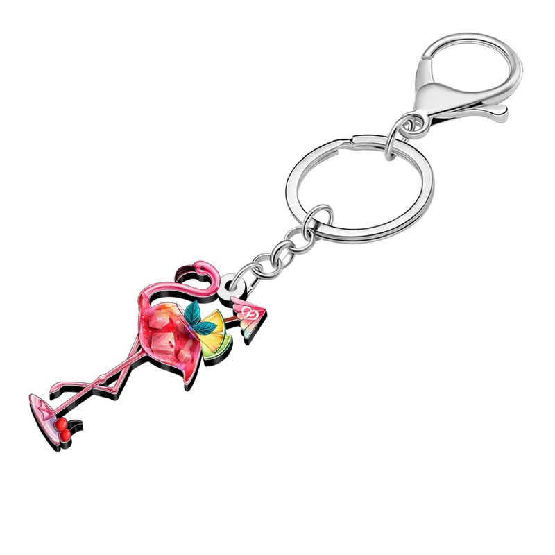 NEWEI Acrylic Cute Pink Flamingo Keychain Key Ring for Women Girls Car Keys Wallet Backpack Bird Lovers Gifts Accessories (Crepe)