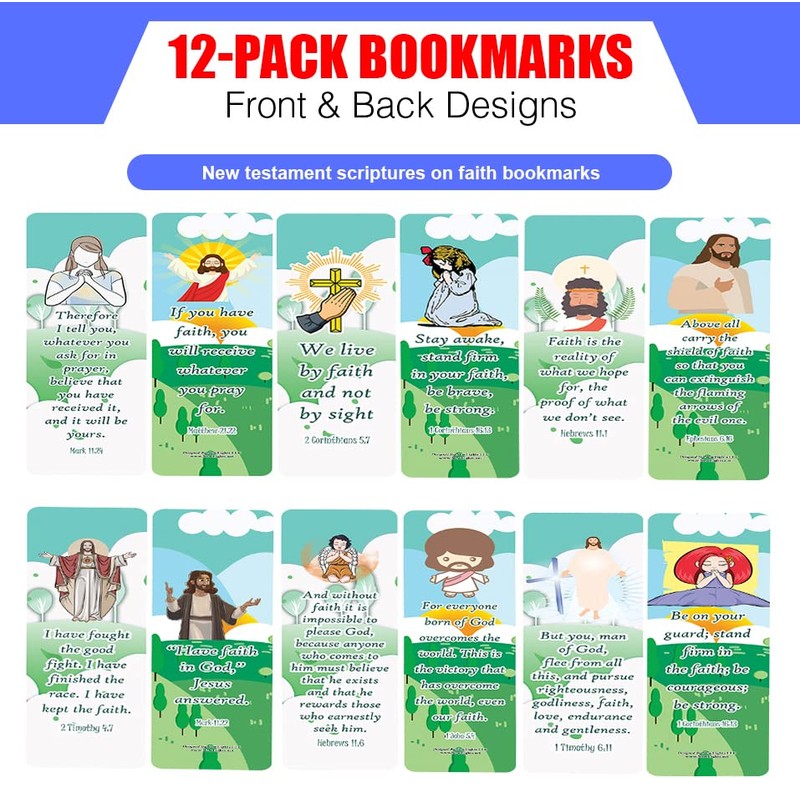 - NEWEIGHTS NEW TESTAMENT SCRIPTURES ON FAITH BOOKMARKS - 6 Unique Designs of Inspirational Christian Quotes from Bible ( 6 X 2 pcs each - Pack of 12).