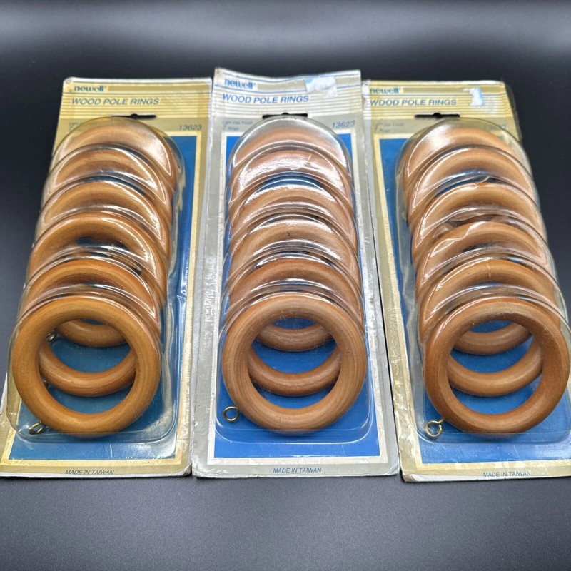 Newell Vintage Newell Boho MCM Wood Drapery Curtain Rod Pole Rings Oak Finish Set of 7