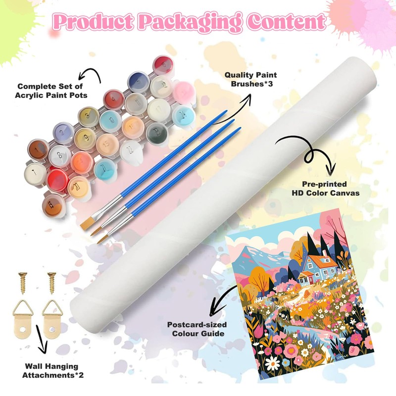 NEWENMO DIY Cartoon Pretty Hut Painting by Numbers Adults, Colourful Flowers Paint by Numbers, Painting by Numbers Kits, DIY Hand Painted Oil Painting Set with Brushes and Acrylic Paints, for Home