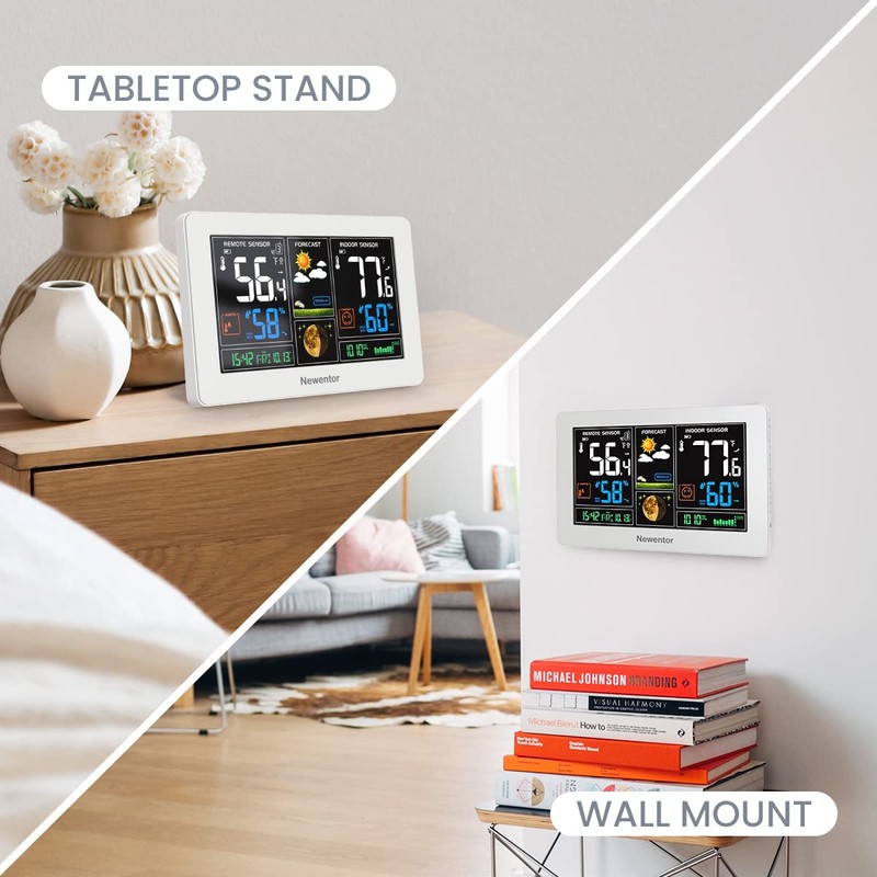 Newentor Weather Station Wireless Indoor Outdoor, Weather Thermometer with Atomic Clock, Large Display Temperature and Humidity Monitor with Alert, Weather Forecast and Barometric Pressure, White