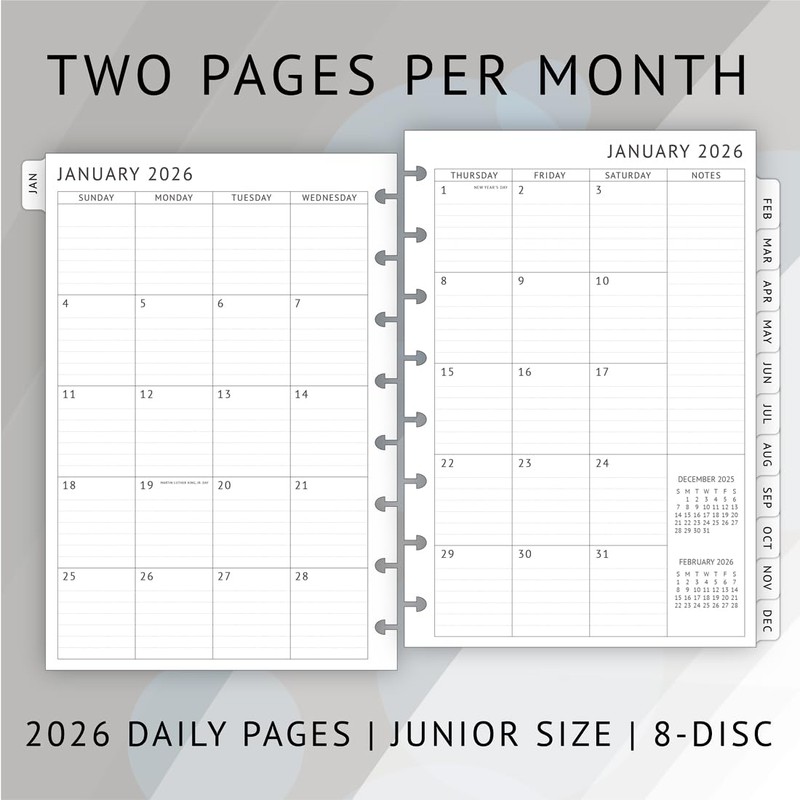 - Dated 2026 daily planner refills junior size compatible with Arc, Levenger, TUL 8-discbound notebooks
