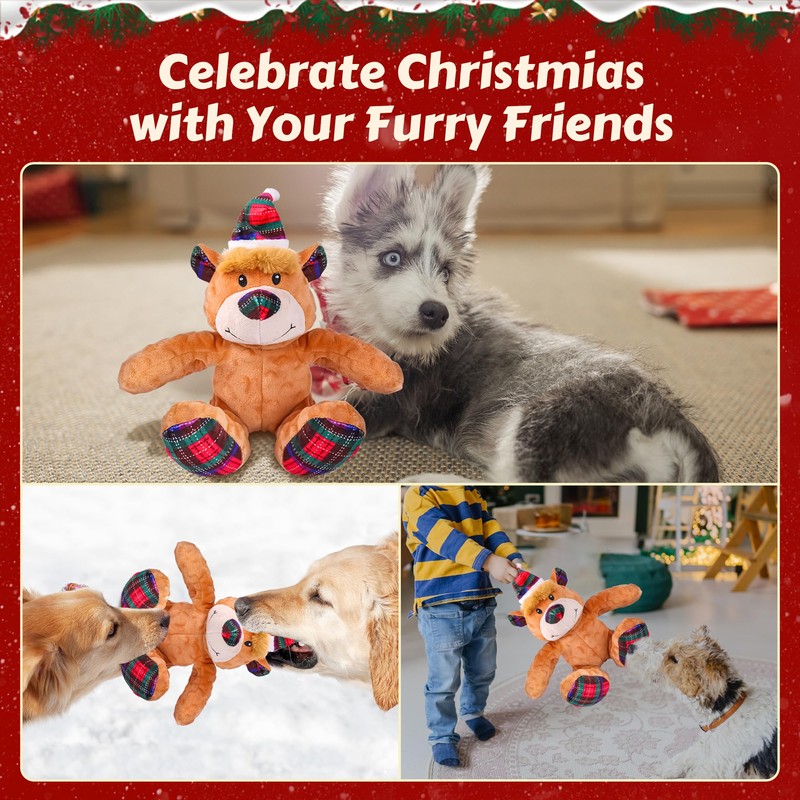 Newget Christmas Dog Toys, Dog Squeaky Plush Chew Toys with Crinkle Paper for Puppy, Small, Medium, Large Dogs, Interactive Pet Holiday Toys for Training and Reducing Boredom