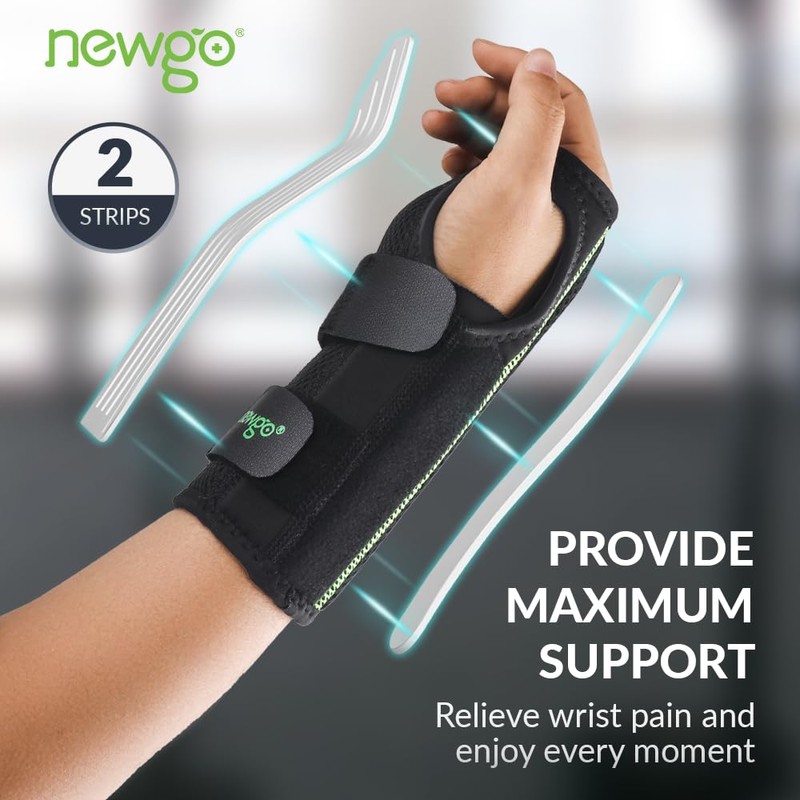 NEWGO Carpal Tunnel Wrist Support with Metal Stabilisers - for Carpal Tunnel Syndrome, Wrist Bandages Soft Pads for Women Men, Wrist Splint Tendinitis, Sprain Recovery