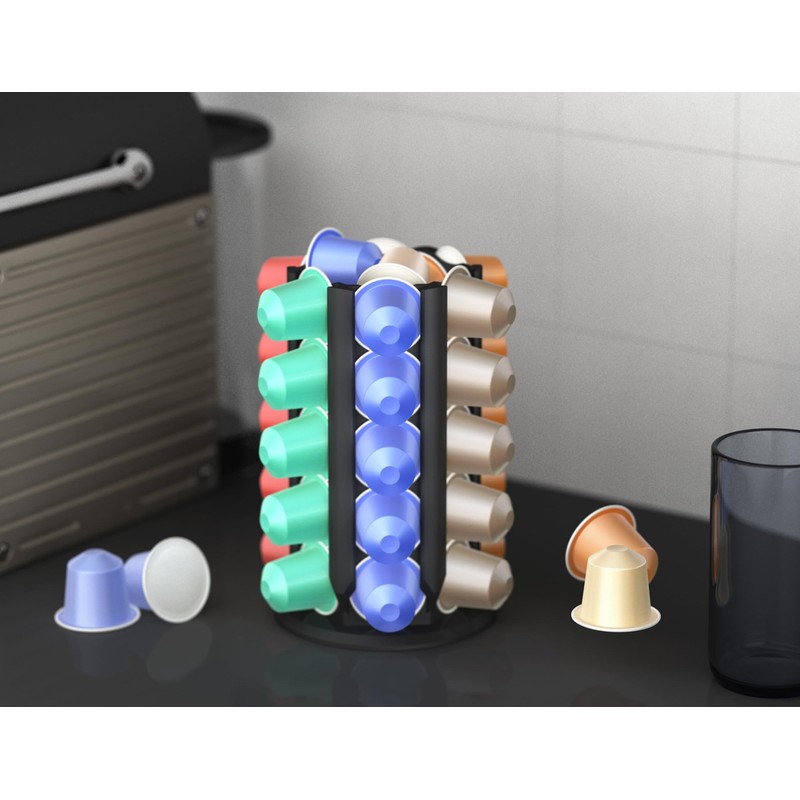 - ✅ EASY ROTATING WITH INTEGRATED SLIDING PADS: The capsule holder is equipped with integrated sliding pads in the base, which not only allows easy rotation, but also ensures that it does not leave scratches on your surface.