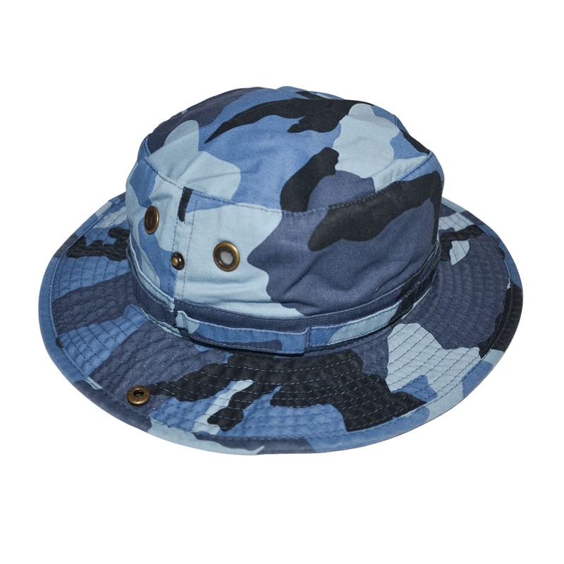 Newhattan Boonie Safari Bucket Hat Foldable Military Style Cap (Blue Sky Camo, L/XL)