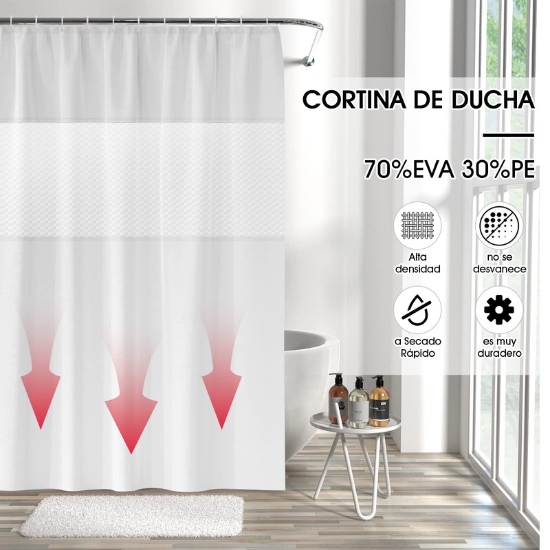 - 【Fácil instalación】: esta cortina de ducha a prueba de moho viene con 12 ganchos de plástico, así como 12 ojales,la cortina de ducha se puede colgar en el poste rápidamente.Bien ventilado, no lavable a máquina. Limpiar con un paño húmedo.