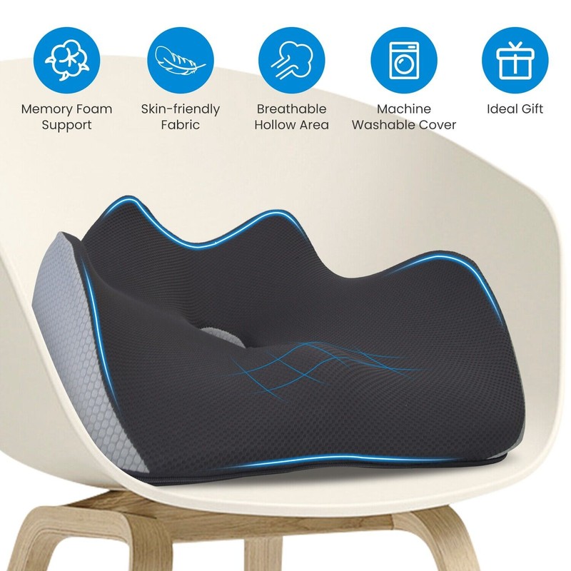 NewHome Memory Foam Seat Cushion Chair Pad for Hemorrhoid Tailbone Pain Relief Women Men