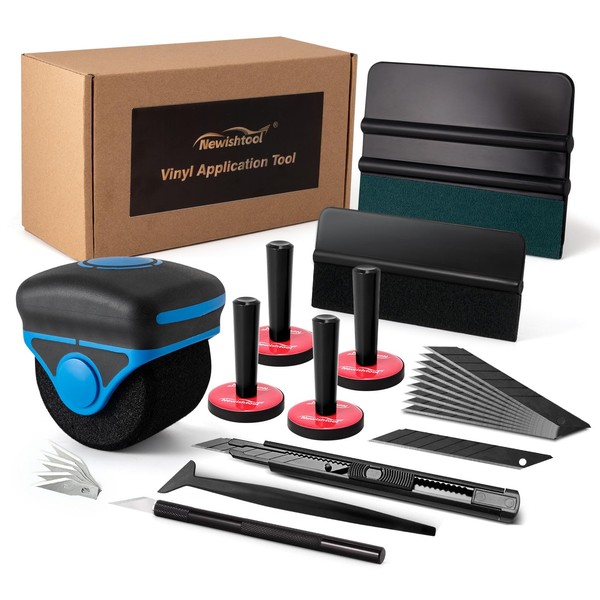 NEWISHTOOL Tinting Kit Vinyl Wrap Tool with Sponge Rivet Roller, 4 PCS Car Wrapping Magnet Holder, Felt Squeegee for Vinyl, Micro Tuck Tool, Razor Blade Cutter, Utility Knife Set for Sign Making Tints