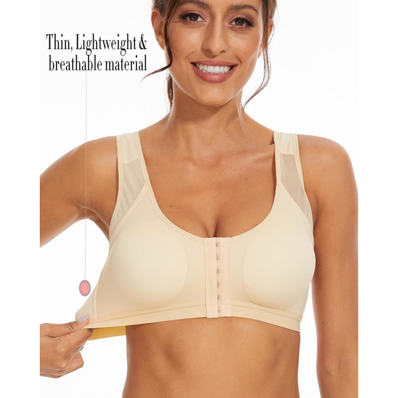 - Front Closure Bras for Women with X-shape back reinforcement and front hooks for back support and correct posture; they are made of Thin and light weight fabric, soft and comfortable.