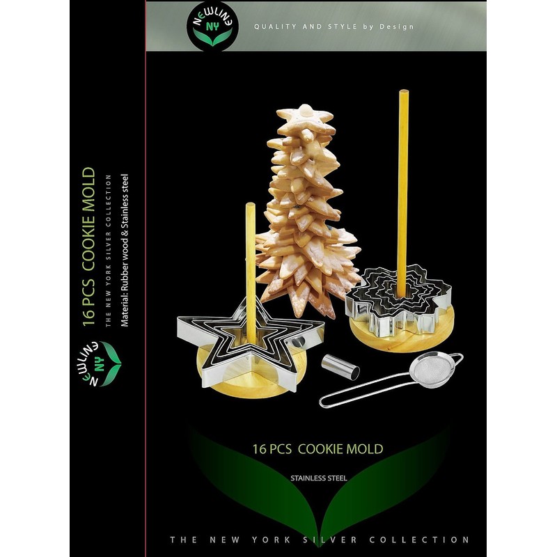 NewlineNY Star Shaped Cookie Molds: 16 Pcs Set to Create Christmas Tree-Like Display with Recipe