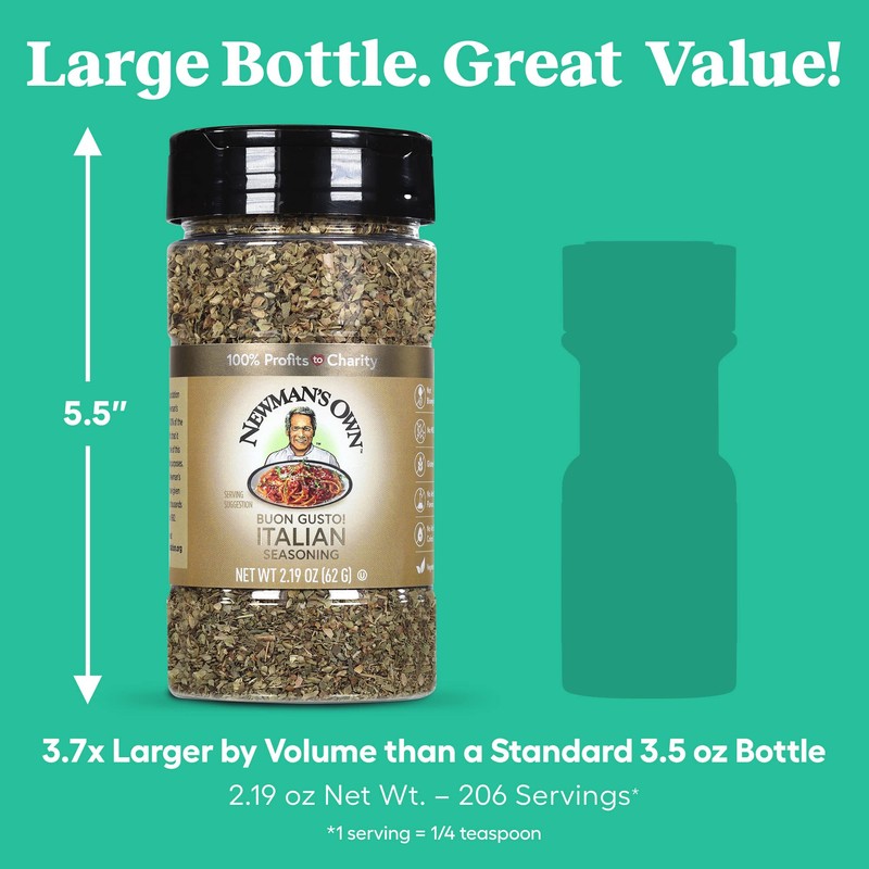 Newman's Own Buon Gusto! Italian Seasoning; Perfect Spices for Cooking Italian Bread, Pizza, Salads and Chicken, No MSG, Gluten Free, Non-GMO, Kosher; 2.19 Oz. Bottle