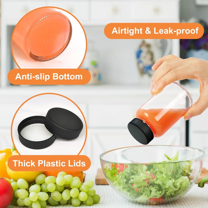 - Leak proof Caps: The ginger shot bottles come with thick plastic leak-proof lids to prevent liquid leakage, which ensures better store and keep fresh for your beverages
