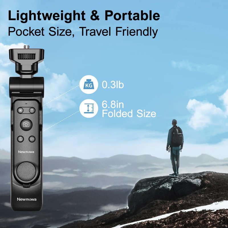 - Stable & LightweightOur Newmowa camera remote shooting tripod is designed to be sleek and lightweight. With a small size of 6.8 inch and lightweight of 0.3 lb, this remote tripod can easily fit into any handbag or backpack. It's incredibly lightweight and portable design, making it a perfect companion for travel, daily life, and outdoor activities. Whenever you want to record a beautiful moment, it always be there. It's also an ideal gift choice for your loved ones, leaving precious memories.