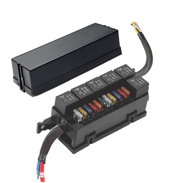- 【Pre-wired Fuse and Relay Box】: This fuse relay box is pre-wired design, All wiring harnesses in the fuse relay block have been installed and can be used directly, and features labeled slots for fuses and relays, making installation and troubleshooting a breeze, ultimately saving you valuable time and effort.