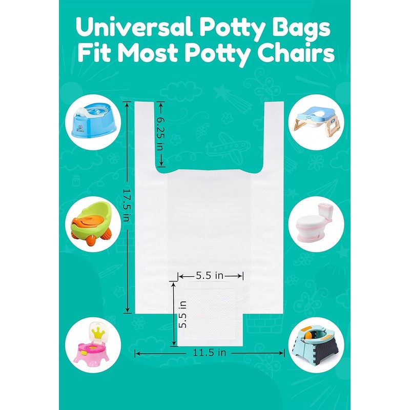 - UNIVERSAL FIT & PORTABLE POTTY BAGS - Compact and lightweight disposable potty refill bags can be carried anywhere, like putting in bags, cars, and homes. Generously sized potty training bags are suitable for most popular potty chairs like OXO 2-in-1 go potty. Even great for pet poop too