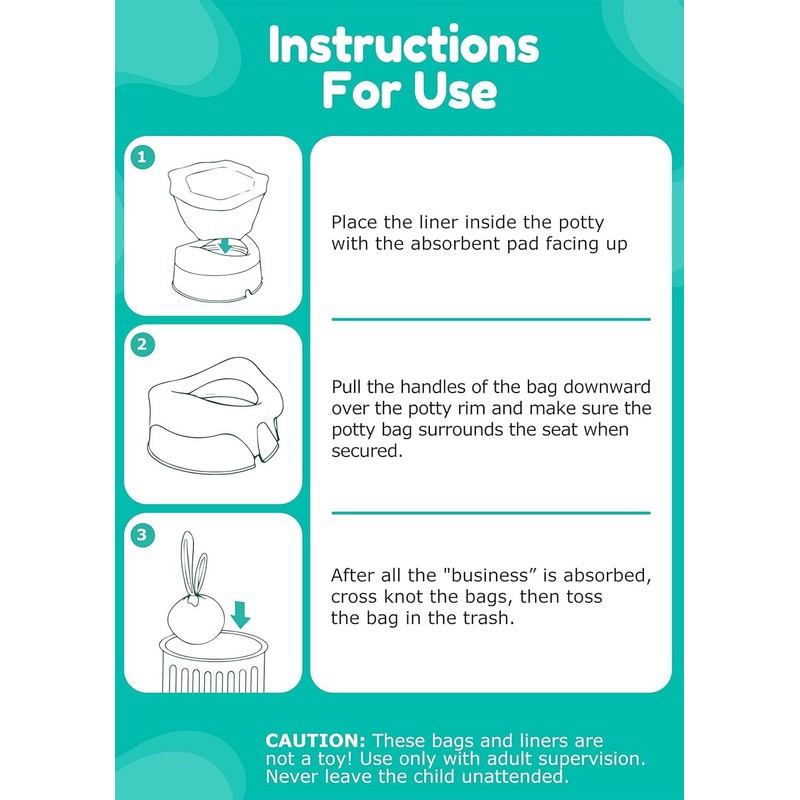 Easy to Use:Simply place the liner in the potty and dispose of it after use. No more scrubbing or washing the potty, making it a stress-free experience for parents.