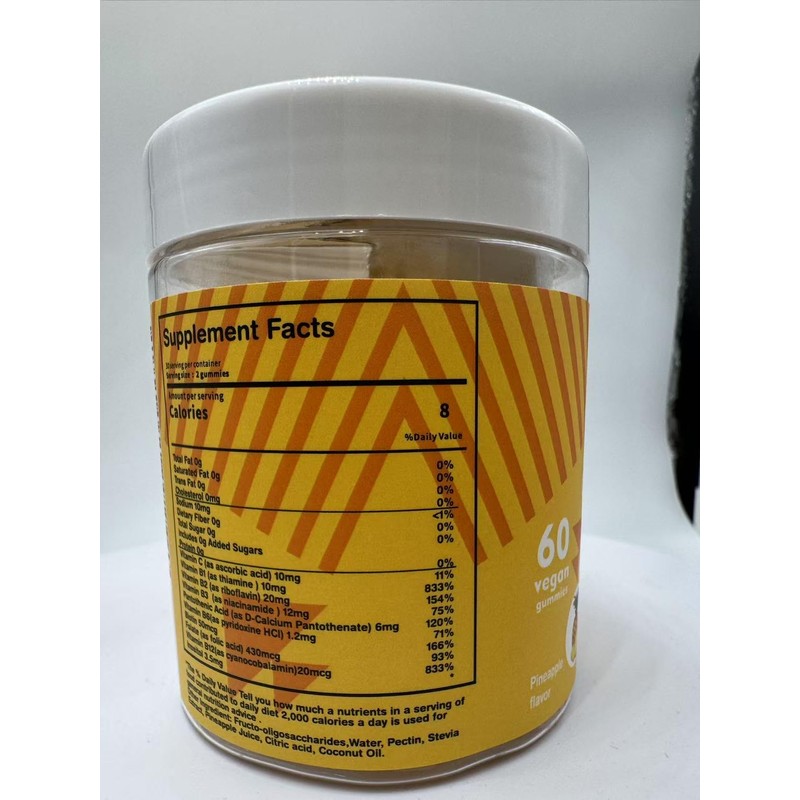 - POTENT AND DELICIOUS B-COMPLEX VITAMINS: The Vitamin B Complex gummies contains essential B vitamins for the human body (Thiamin,Riboflavin,B6,B12,Biotin ),over 100% of the daily value of Folate as well as 10 mg of vitamin C.
