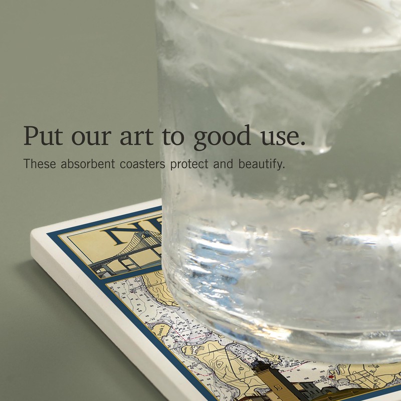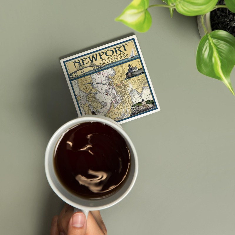 - Newport, Rhode Island, Nautical Chart (Absorbent Ceramic Coaster, Single, Cork Back, Kitchen Table Decor), each coaster measures 4x4 inches.