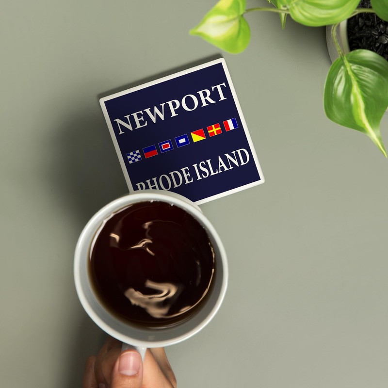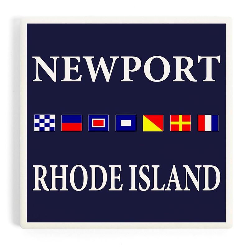 Newport, Rhode Island, Nautical Flags (Absorbent Ceramic Coaster, Single, Cork Back, Kitchen Table Decor)