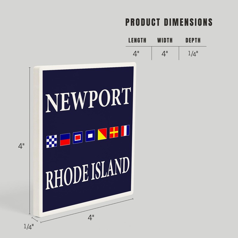 - Newport, Rhode Island, Nautical Flags (Absorbent Ceramic Coaster, Single, Cork Back, Kitchen Table Decor), each coaster measures 4x4 inches.