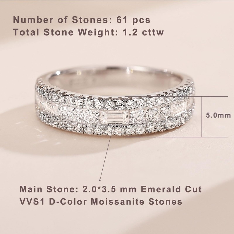 - Stunning Design: Main Stone Size:2.0*3.5mm Emerald Cut. Experience luxury with Newshe's D colors VVS1 clarity moissanite wedding bands for women, an elegant addition to your wedding band collection