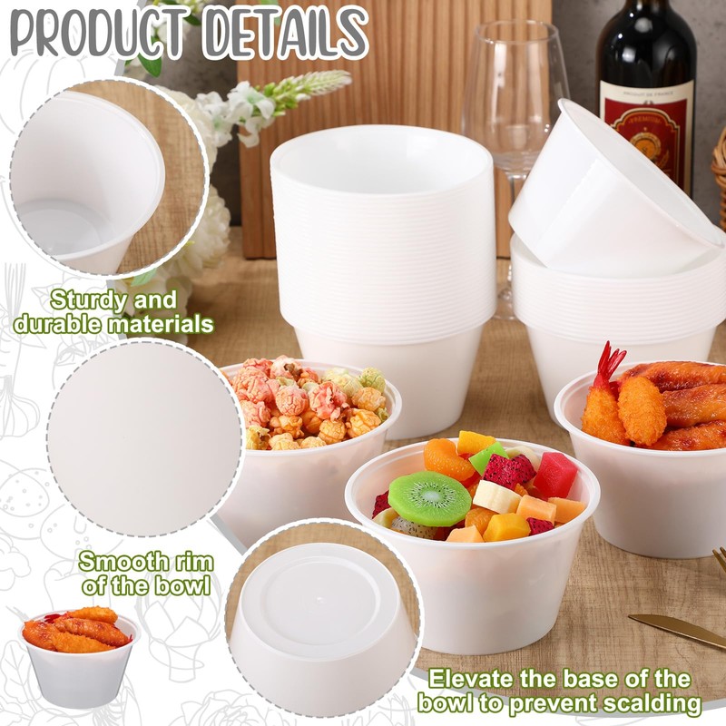 - Widely Application: our white plastic bowls can serve a variety of foods, such as salads, snacks, candies, pasta, etc., which are ideal for daily dining and party entertainment, and also suitable for outdoor activities such as camping, picnics, BBQ
