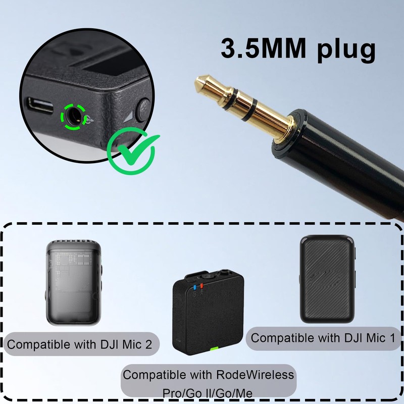 - Special Design: The mini Omnidirectional Lavalier Lapel 3.5mm Microphone replacement Mic compatible with Rode wireless go 2, wireless go ii, wireless go, wireless go me,Perfect work for DJI Mic Transmitters clip-on microphone system; Also compatible with Rode transmitters TX-BELT, TX-XLR, for Rodelink Filmmaker Kit, for Newshooter Kit; With Standard 3.5mm TRS Plug jack input.compatible with DSLR or mirrorless cameras and camcorders with a 3.5mm female audio jack. NOT compatible with PC, cellphones, and tablets.