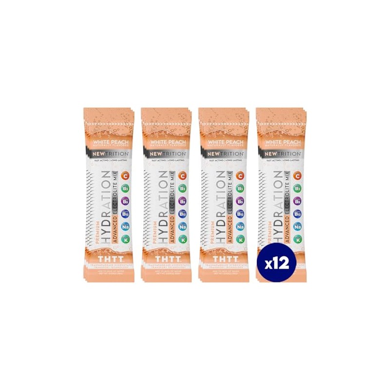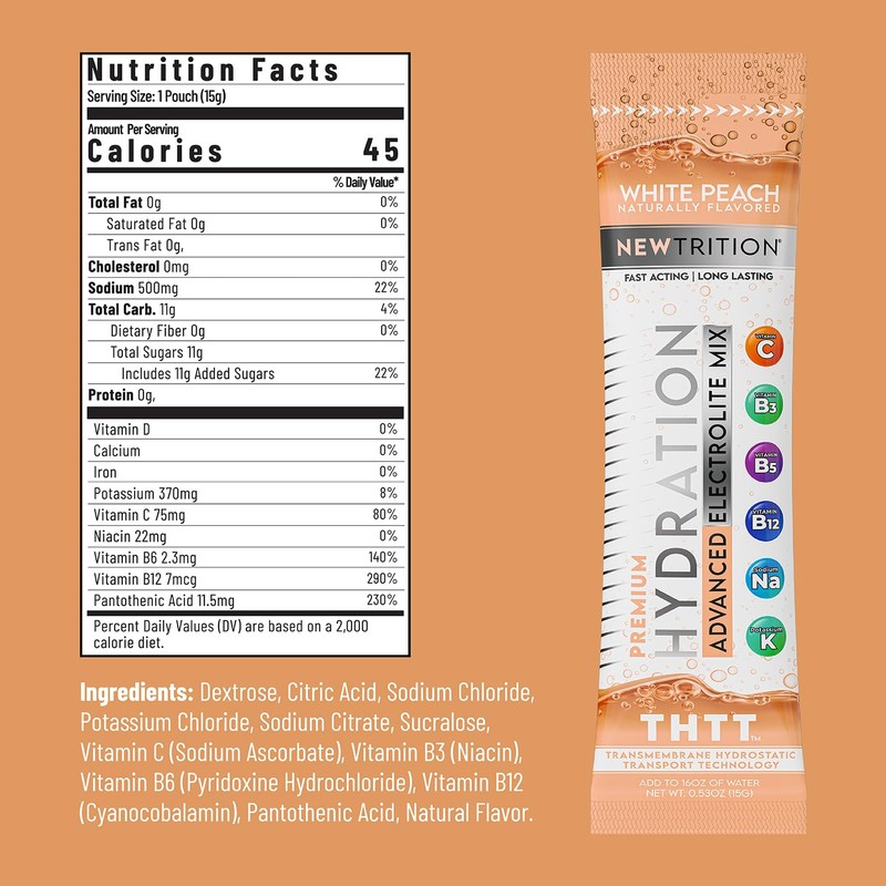 NewTrition Hydration Powder, Electrolyte Powder Packets, Naturally Flavored Hydrating Packets for Water, Fast Acting Hydrate Electrolytes with Vitamins C & D, White Peach, 12 Servings